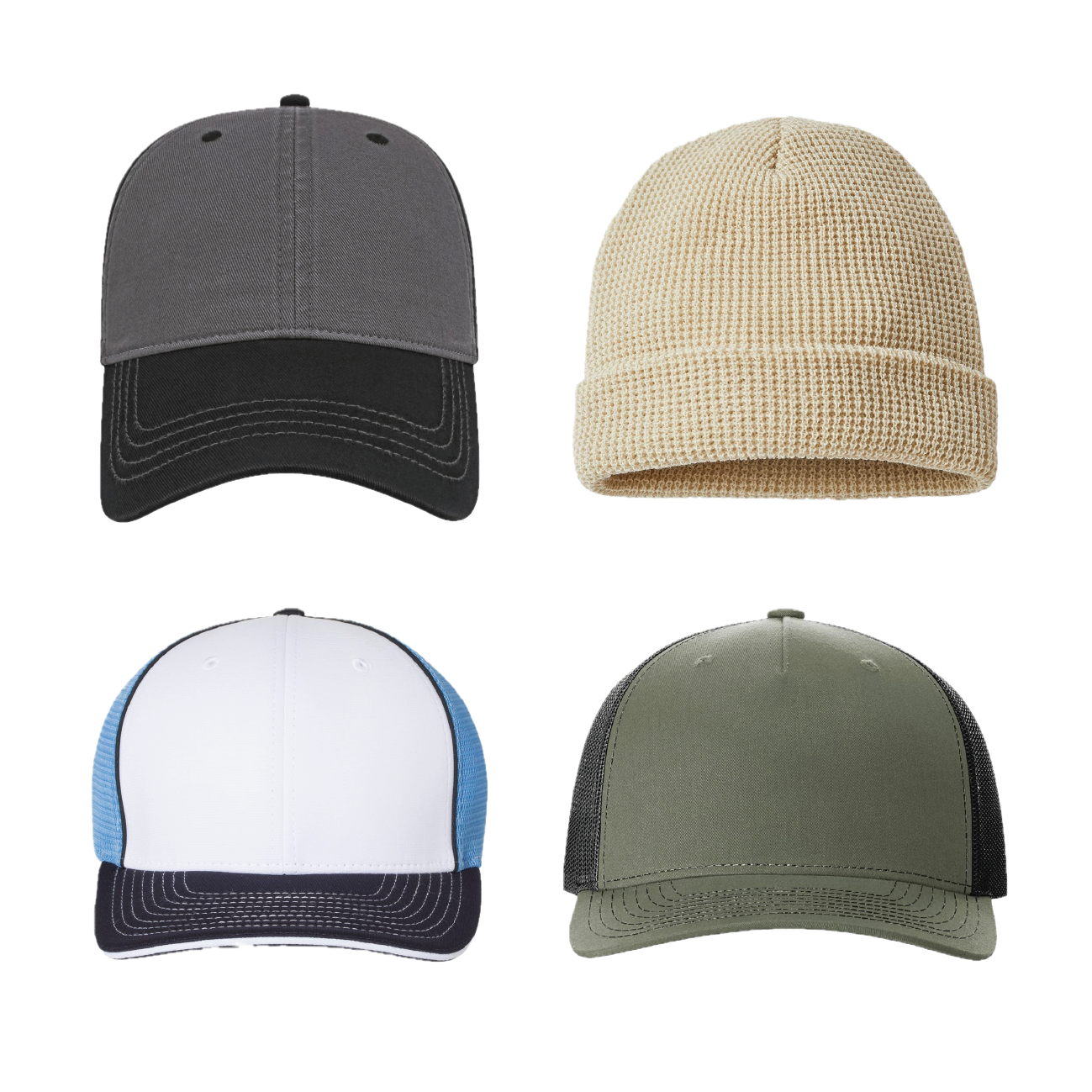 Discover endless possibilites with our custom hats in multiple styles. Whether you prefer snapbacks, fitted, dad hats, or beanies, our collection combines quality craftmanship with your unique design.